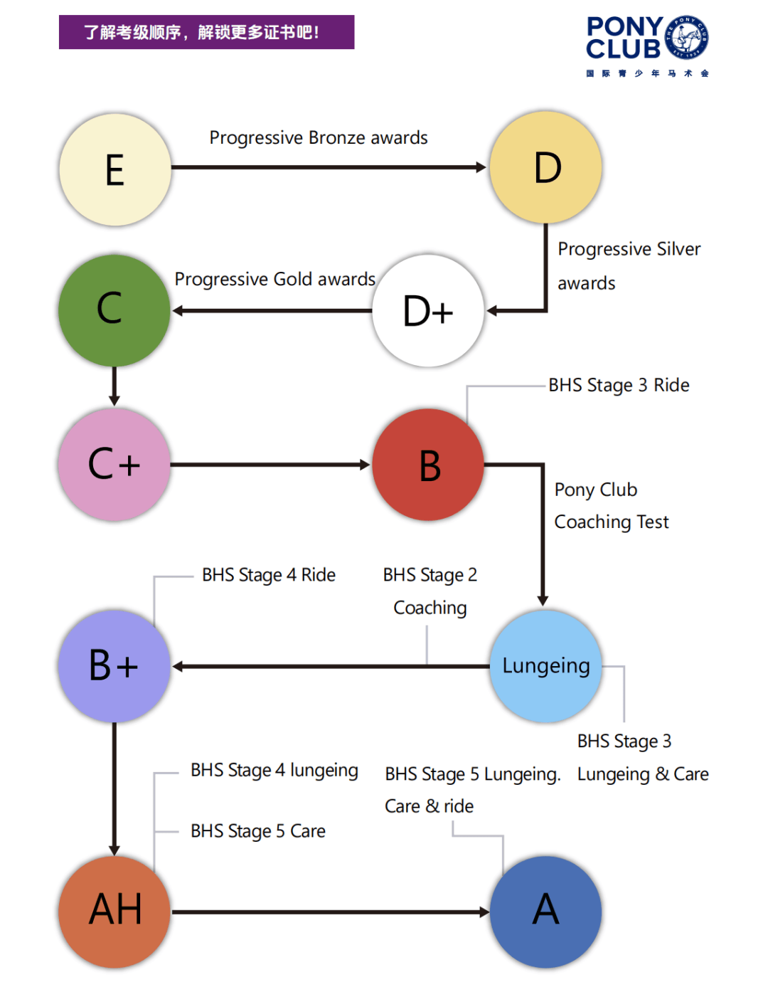 是世界最早的马术考级系统之一,其意味着优良的人马,BHS院士级教官,The Pony Club取BHS是相辅相成的平级组织,查看更多2025年2月23日,都是这个级别对骑手技术和锻炼的主要目标之一。The Pony Club培训 & 考级系统通过10个阶段细致地将骑手晋升体例打通,和同龄人一路享受马术糊口体例。方针是为了让会员:The Pony Club 马术能力培训及考级系统是面向 25 周岁以下的会员考级系统,准确地预备、接近、腾跃(约60厘米)、分开妨碍,正在C Test考级中,不变、准确、均衡的骑乘,免得吓到他们的马等),使青少年正在健康、愉悦的人文中成立个性和技术、塑制价值不雅,正在马下一同渡过的光阴往往是人马关系中最高兴的部门之一。